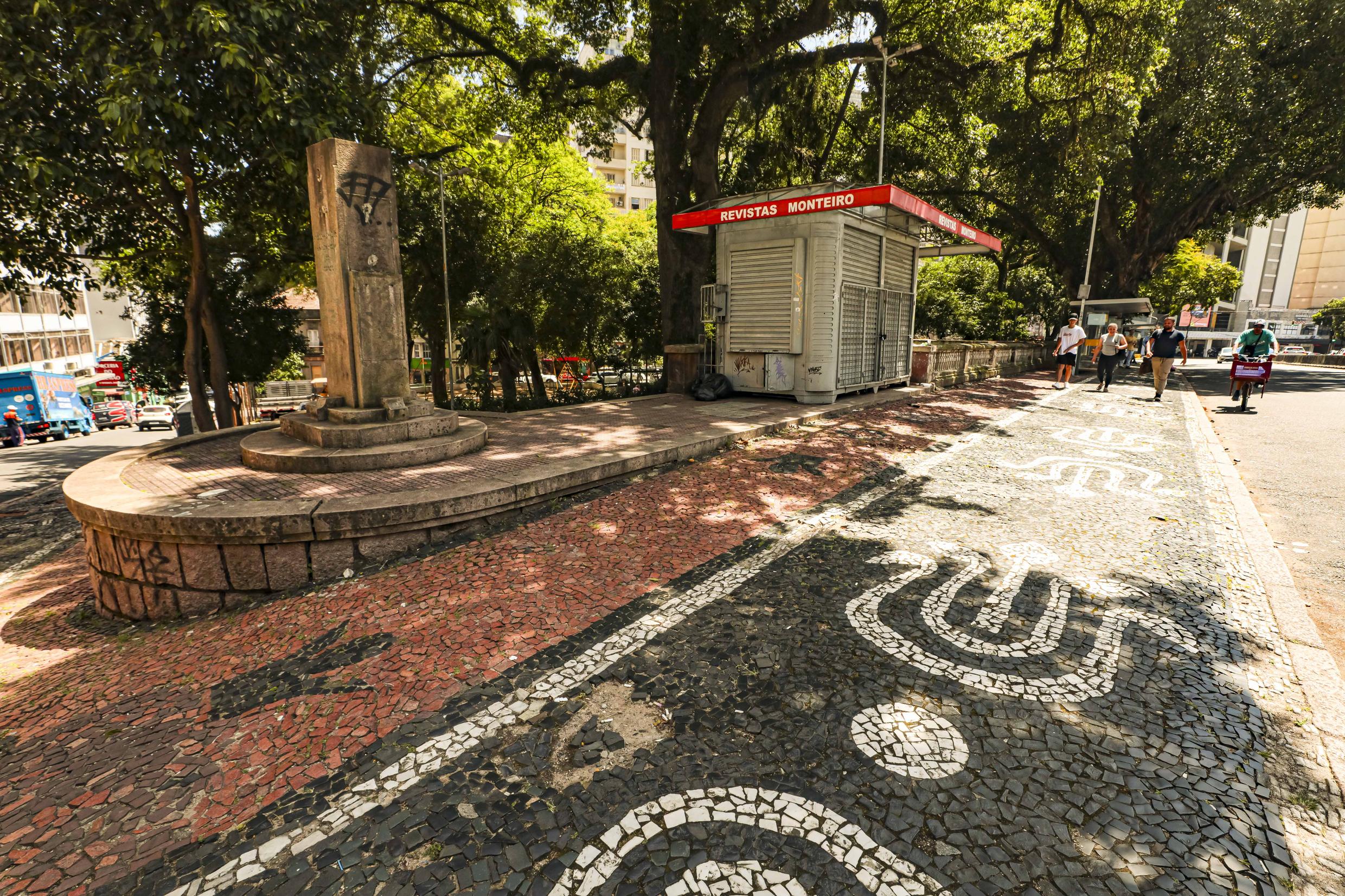 Porto Alegre, RS, Brasil, 18/11/2025: Começou nesta segunda-feira (17) o processo de revitalização da Praça Dom Feliciano. Entregue em 1809, está localizada entre as ruas Professor Annes Dias, dos Andradas e Senhor dos Passos e em frente à Santa Casa de Misericórdia, na capital gaúcha. Foto: Alex Rocha/PMPA
