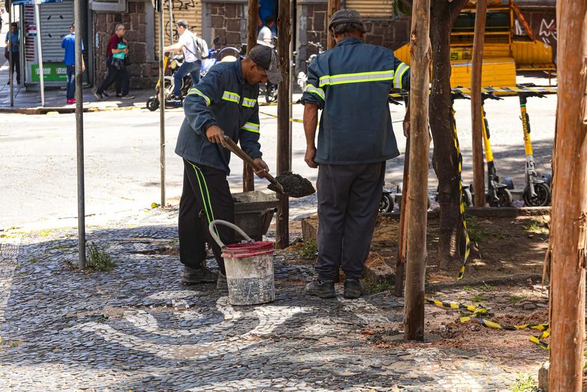 Porto Alegre, RS, Brasil, 18/11/2025: Começou nesta segunda-feira (17) o processo de revitalização da Praça Dom Feliciano. Entregue em 1809, está localizada entre as ruas Professor Annes Dias, dos Andradas e Senhor dos Passos e em frente à Santa Casa de Misericórdia, na capital gaúcha. Foto: Alex Rocha/PMPA