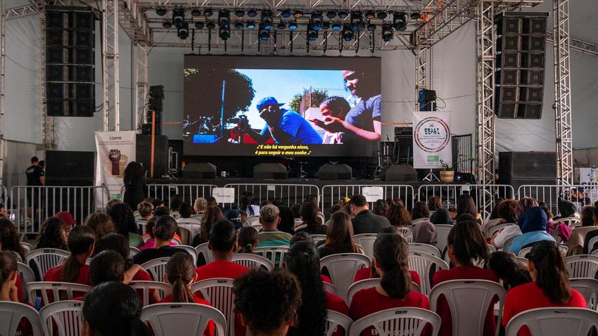Porto Alegre - 21/11/2025: A 35ª Semana da Consciência Negra de Porto Alegre recebeu a exibição do curta-metragem Aconteceu à Luz da Lua, do diretor Crystom Afronário, ex-aluno da EMEF Professora Judith Macedo de Araújo. O curta concorreu e ganhou o Prêmio Especial do Júri de Melhor Curta-Metragem no 53º Festival de Cinema de Gramado. Foto: Henry Rodrigues/SMED/PMPA