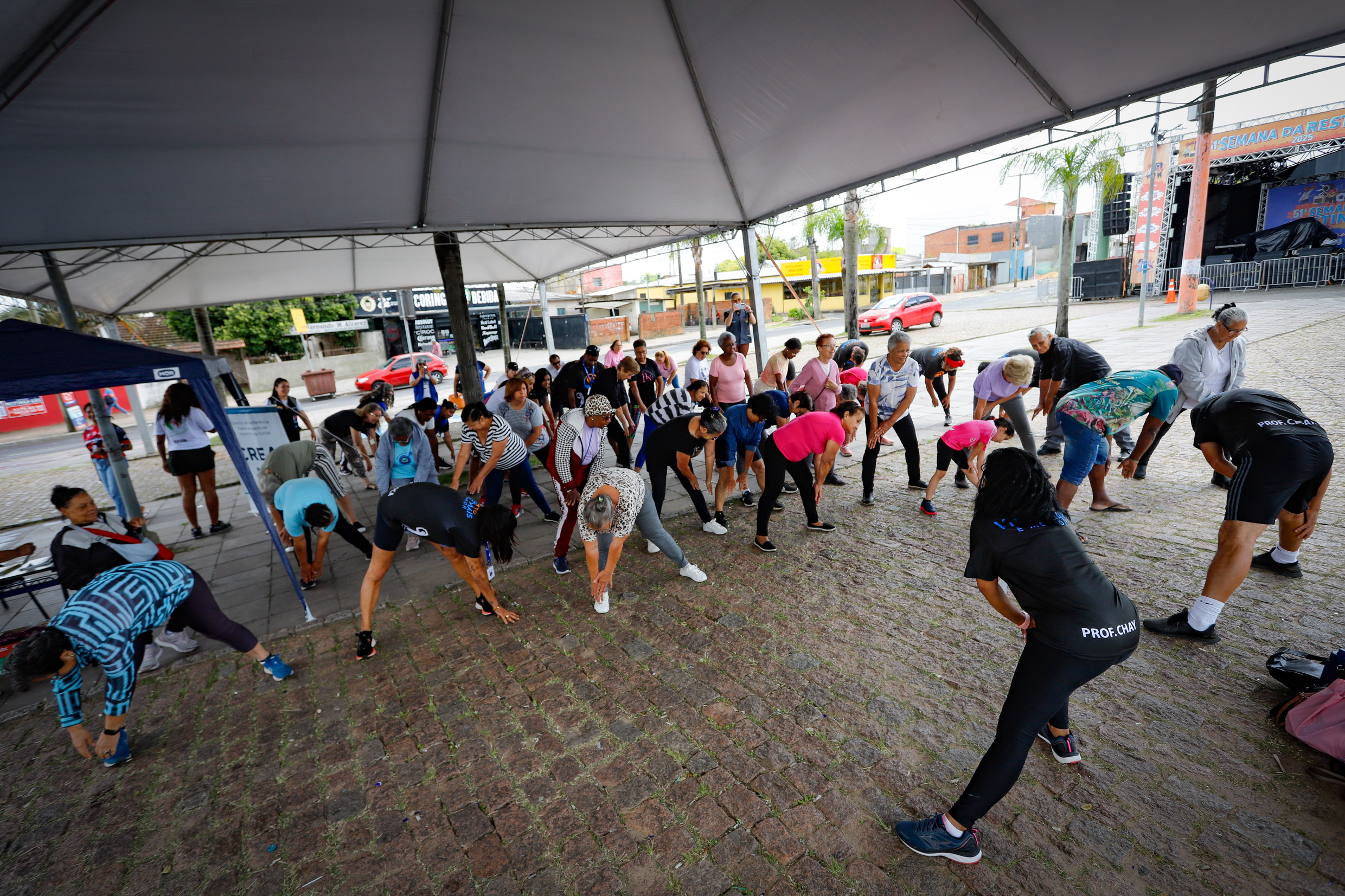 Porto Alegre, RS, 22/11/2025 Em alusão ao Dia da Consciência Negra, celebrado em 20 de novembro, a Secretaria Municipal de Saúde realizou um aulão gratuito de atividades físicas, conduzido pelos professores do Projeto Viver Mais e Melhor e aberto a toda a população. A atividade foi realizada na Esplanada da Restinga (Estr. João Antônio da Silveira, 2359), onde também ocorre a 51ª Semana da Restinga. Foto: Cristine Rochol/PMPA