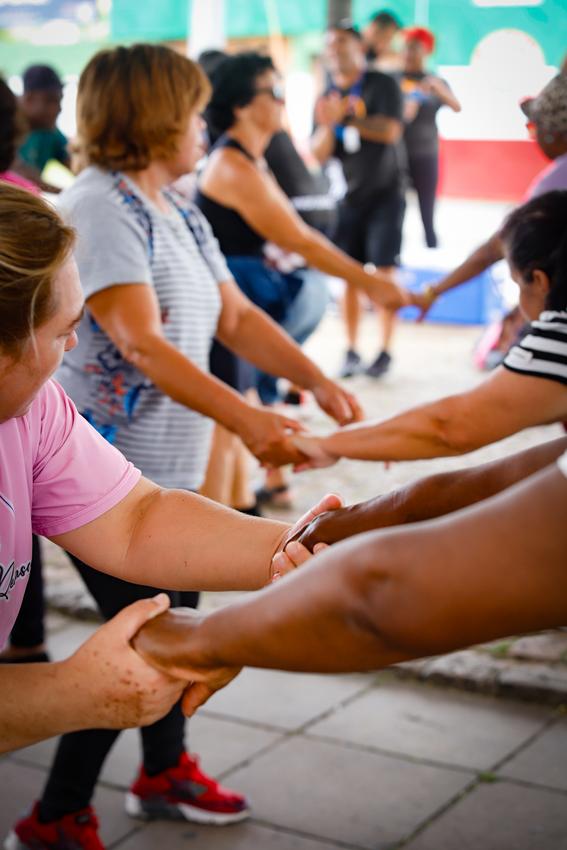Porto Alegre, RS, 22/11/2025 Em alusão ao Dia da Consciência Negra, celebrado em 20 de novembro, a Secretaria Municipal de Saúde realizou um aulão gratuito de atividades físicas, conduzido pelos professores do Projeto Viver Mais e Melhor e aberto a toda a população. A atividade foi realizada na Esplanada da Restinga (Estr. João Antônio da Silveira, 2359), onde também ocorre a 51ª Semana da Restinga. Foto: Cristine Rochol/PMPA