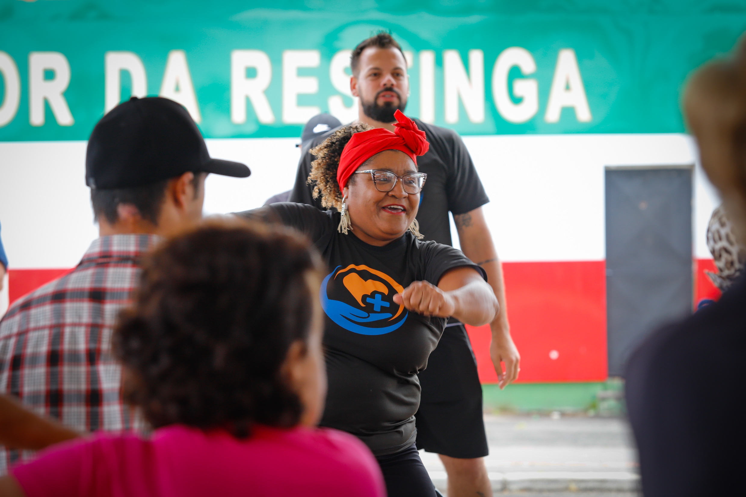 Porto Alegre, RS, 22/11/2025 Em alusão ao Dia da Consciência Negra, celebrado em 20 de novembro, a Secretaria Municipal de Saúde realizou um aulão gratuito de atividades físicas, conduzido pelos professores do Projeto Viver Mais e Melhor e aberto a toda a população. A atividade foi realizada na Esplanada da Restinga (Estr. João Antônio da Silveira, 2359), onde também ocorre a 51ª Semana da Restinga. Foto: Cristine Rochol/PMPA