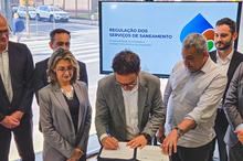 Porto Alegre - 24/11/2025: A Prefeitura de Porto Alegre e a Agência Estadual de Regulação dos Serviços Públicos Delegados do Rio Grande do Sul (Agergs) assinaram nesta segunda-feira, 24, o contrato de regulação dos serviços de abastecimento de água e esgotamento sanitário da Capital. A assinatura ocorreu no Smartlab Procempa, localizado no térreo do Centro Administrativo Municipal Guilherme Socias Vilella. Foto: Giulian Serafim/PMPA