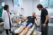Porto Alegre, RS, 25/11/2025 Dia 25 de novembro é o dia do doador de sangue. O jornalista e comunicador, Luciano Potter, esteve no Banco de Sangue do HPS para sensibilizar a população sobre a importância de doar. A coordenadora do Banco de Sangue, Christina Fiorini, apresentou o serviço. Foto: Cristine Rochol/PMPA