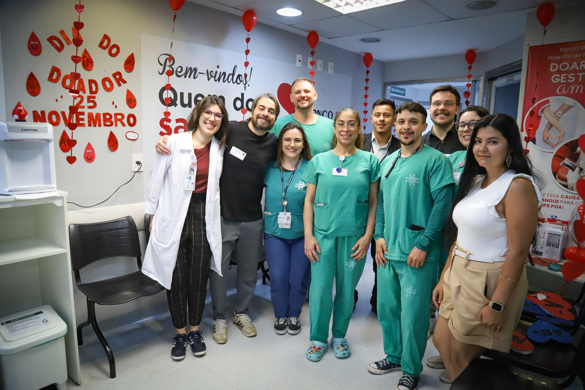 Porto Alegre, RS, 25/11/2025 Dia 25 de novembro é o dia do doador de sangue. O jornalista e comunicador, Luciano Potter, esteve no Banco de Sangue do HPS para sensibilizar a população sobre a importância de doar. A coordenadora do Banco de Sangue, Christina Fiorini, apresentou o serviço. Foto: Cristine Rochol/PMPA