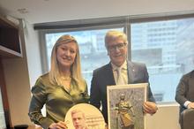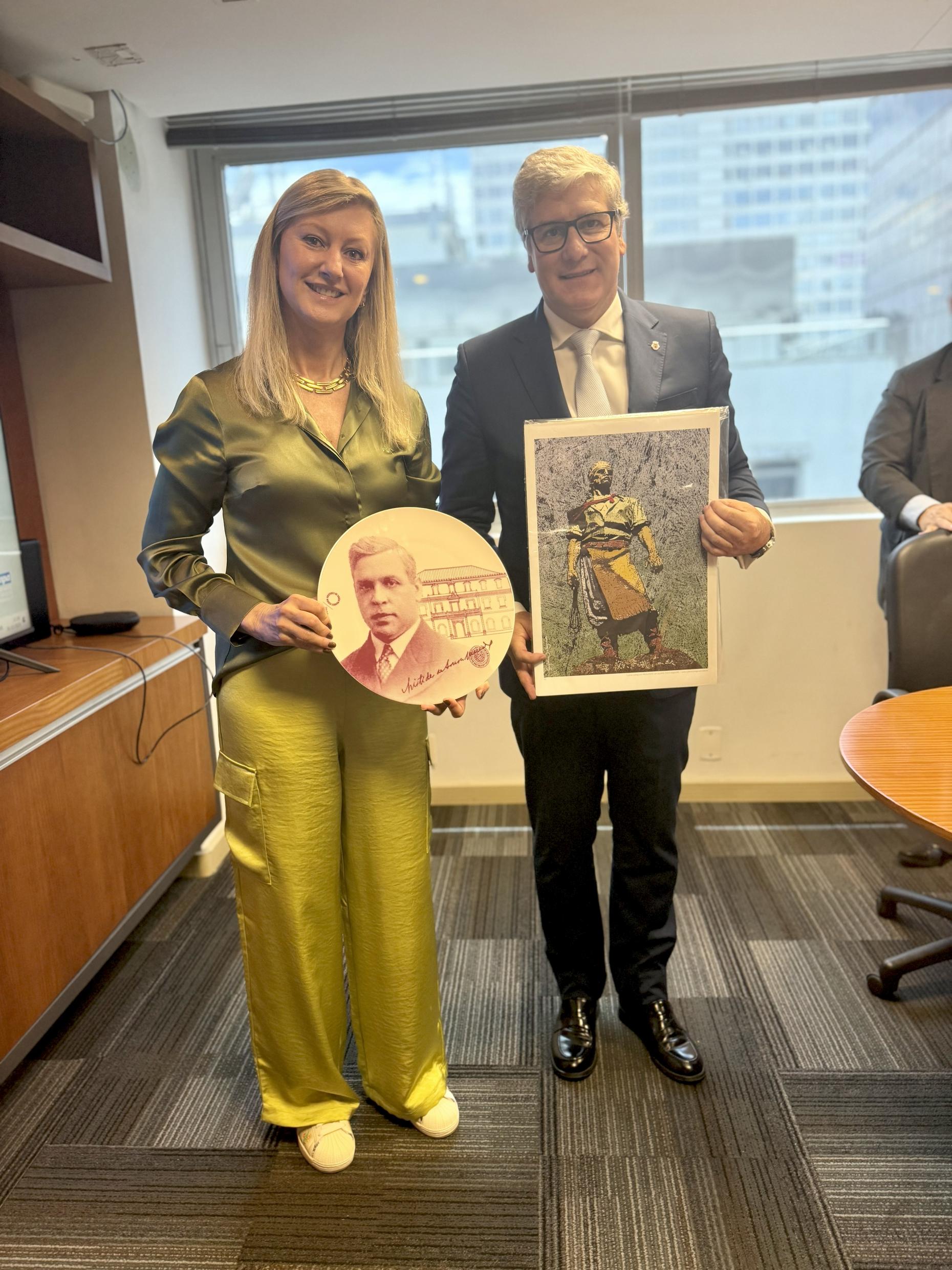 Porto Alegre - 26/11/2025: Vice-prefeita de Porto Alegre, Betina Worm recebe o presidente da Câmara Municipal de Carregal do Sal, Paulo Catalino. A visita institucional contempla a preservação da memória e legado da ação humanitária de Aristides de Souza Mendes. Fotos: Divulgação / PMPA