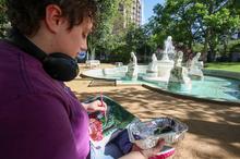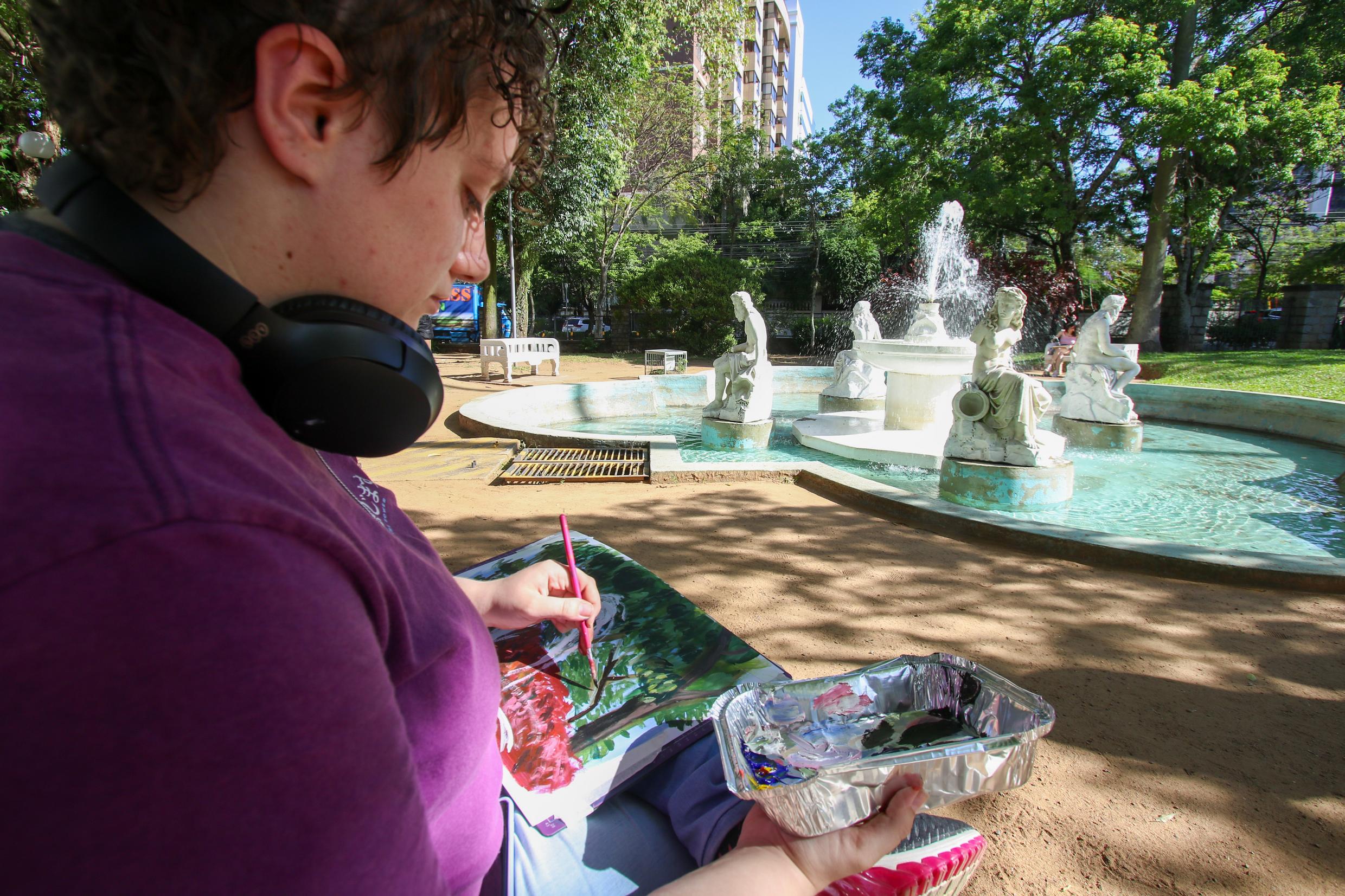 Porto Alegre, RS. 26/11/2025. Alunos da UFRGS realizam atividade de pintura no Jardim do DMAE