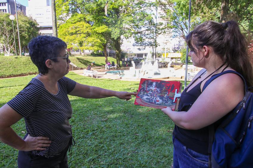 Porto Alegre, RS. 26/11/2025. Alunos da UFRGS realizam atividade de pintura no Jardim do DMAE