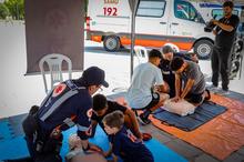 Porto Alegre, RS, 29/11/2025 Para encerrar as comemorações dos 30 anos do Serviço de Atendimento Móvel de Urgência (Samu), a equipe promoveu, neste sábado (29), no Parque Farroupilha (Redenção), orientações e demonstrações práticas sobre como reconhecer uma parada cardiorrespiratória e os sinais do acidente vascular cerebral (AVC). O evento ocorreu em frente ao Monumento ao Expedicionário. Foto: Cristine Rochol/PMPA