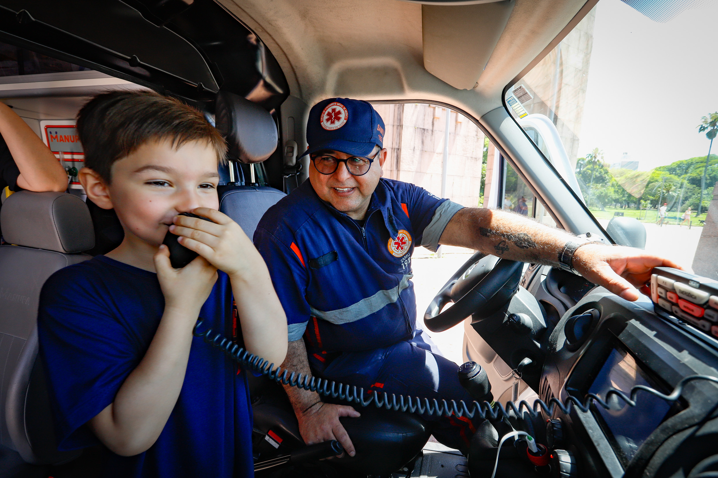 Porto Alegre, RS, 29/11/2025 Para encerrar as comemorações dos 30 anos do Serviço de Atendimento Móvel de Urgência (Samu), a equipe promoveu, neste sábado (29), no Parque Farroupilha (Redenção), orientações e demonstrações práticas sobre como reconhecer uma parada cardiorrespiratória e os sinais do acidente vascular cerebral (AVC). O evento ocorreu em frente ao Monumento ao Expedicionário. Foto: Cristine Rochol/PMPA