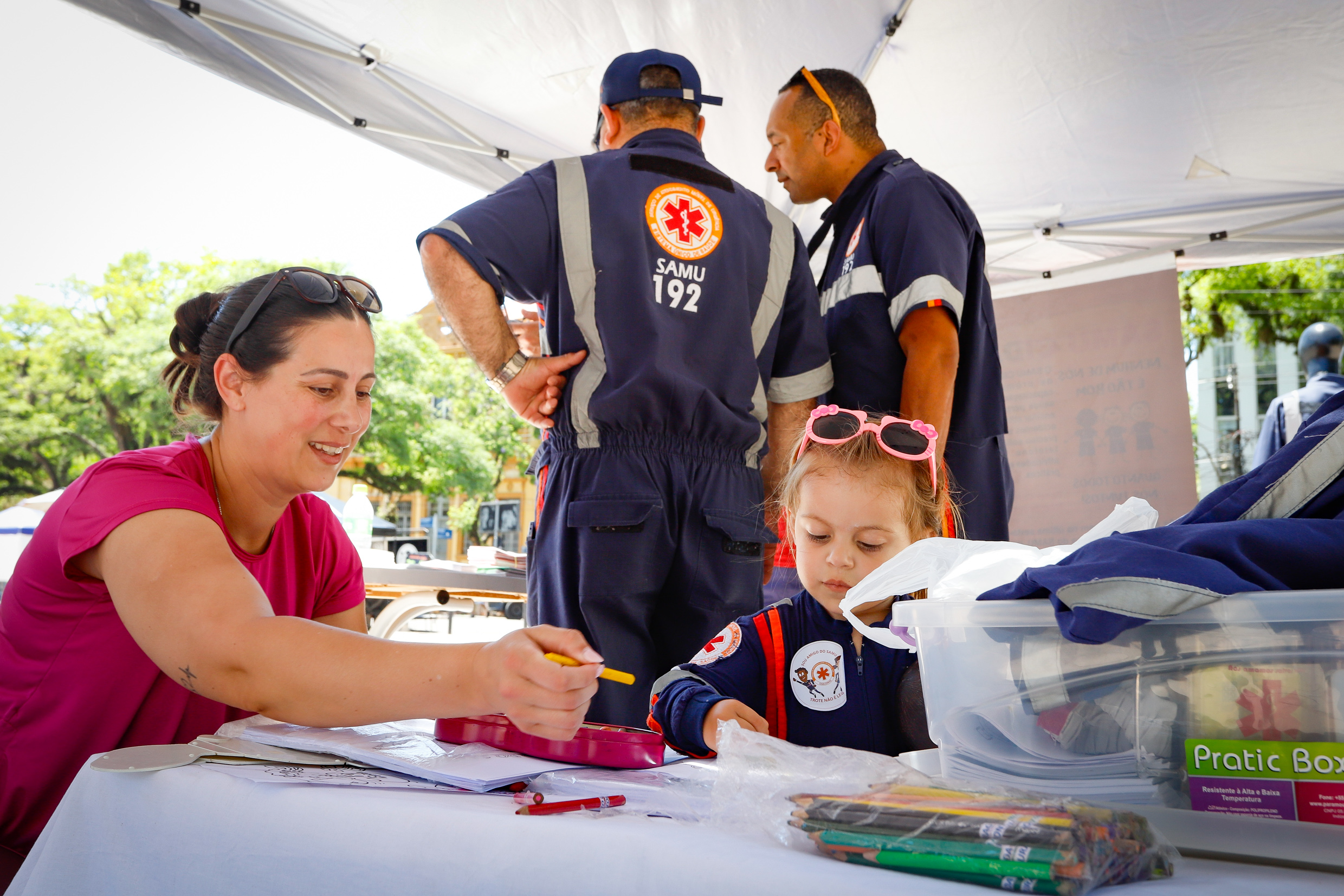 Porto Alegre, RS, 29/11/2025 Para encerrar as comemorações dos 30 anos do Serviço de Atendimento Móvel de Urgência (Samu), a equipe promoveu, neste sábado (29), no Parque Farroupilha (Redenção), orientações e demonstrações práticas sobre como reconhecer uma parada cardiorrespiratória e os sinais do acidente vascular cerebral (AVC). O evento ocorreu em frente ao Monumento ao Expedicionário. Foto: Cristine Rochol/PMPA