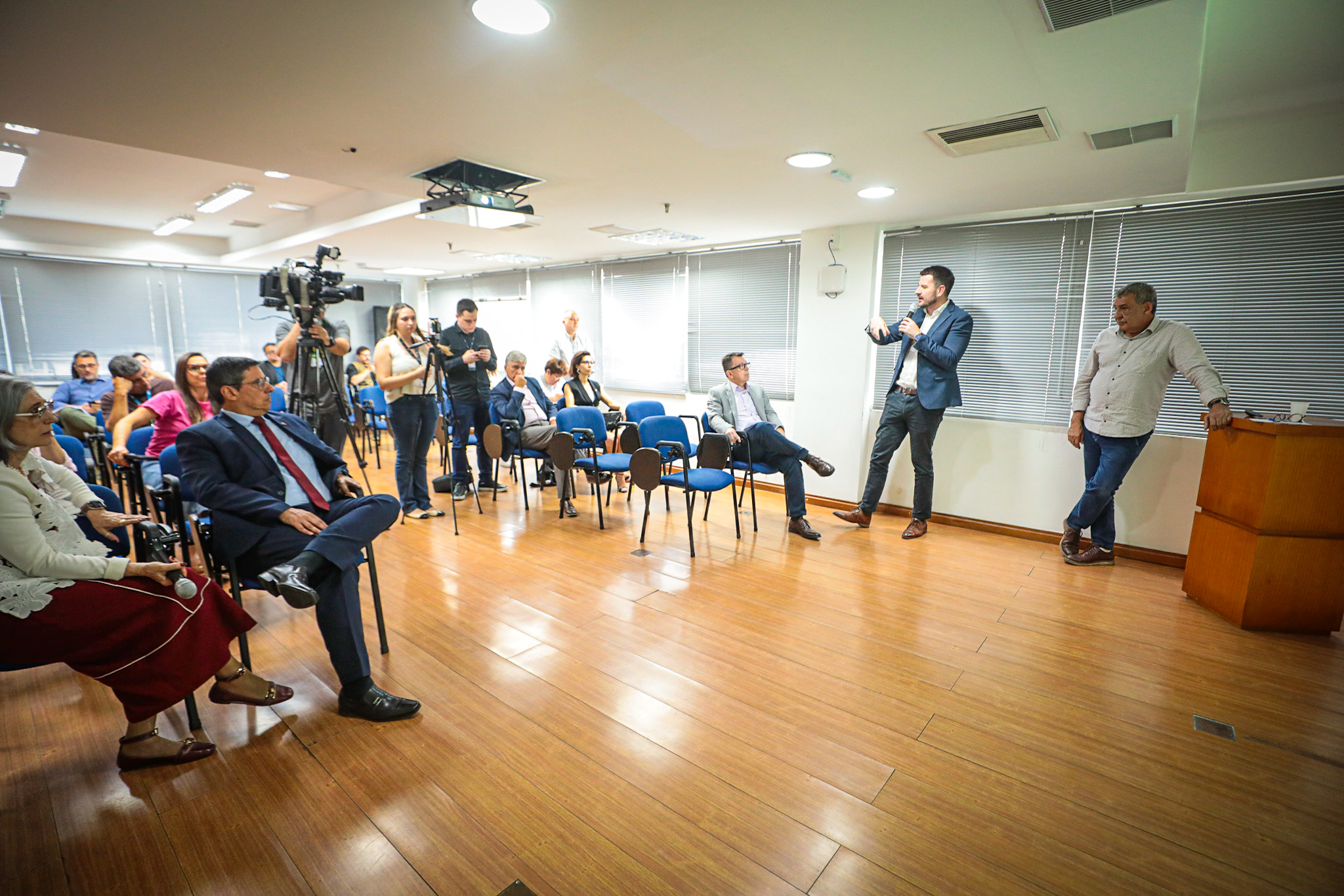 Porto Alegre, RS, Brasil, 02/12/2025: A Prefeitura de Porto Alegre apresentou, nesta terça-feira (02), durante encontro no auditório do 18º andar do Centro Administrativo Municipal Guilherme Socias Villela (CAM), o Projeto de Lei que propõe a revisão dos critérios de avaliação dos imóveis da Capital. O prefeito Sebastião Melo e a secretária municipal da Fazenda, Ana Pellini, apresentaram as novas regras sugeridas para a atualização do valor venal dos imóveis no município. A iniciativa busca modernizar o sistema de avaliação, adequá-lo às exigências legais e e dar mais transparência ao processo. Foto: Alex Rocha/PMPA