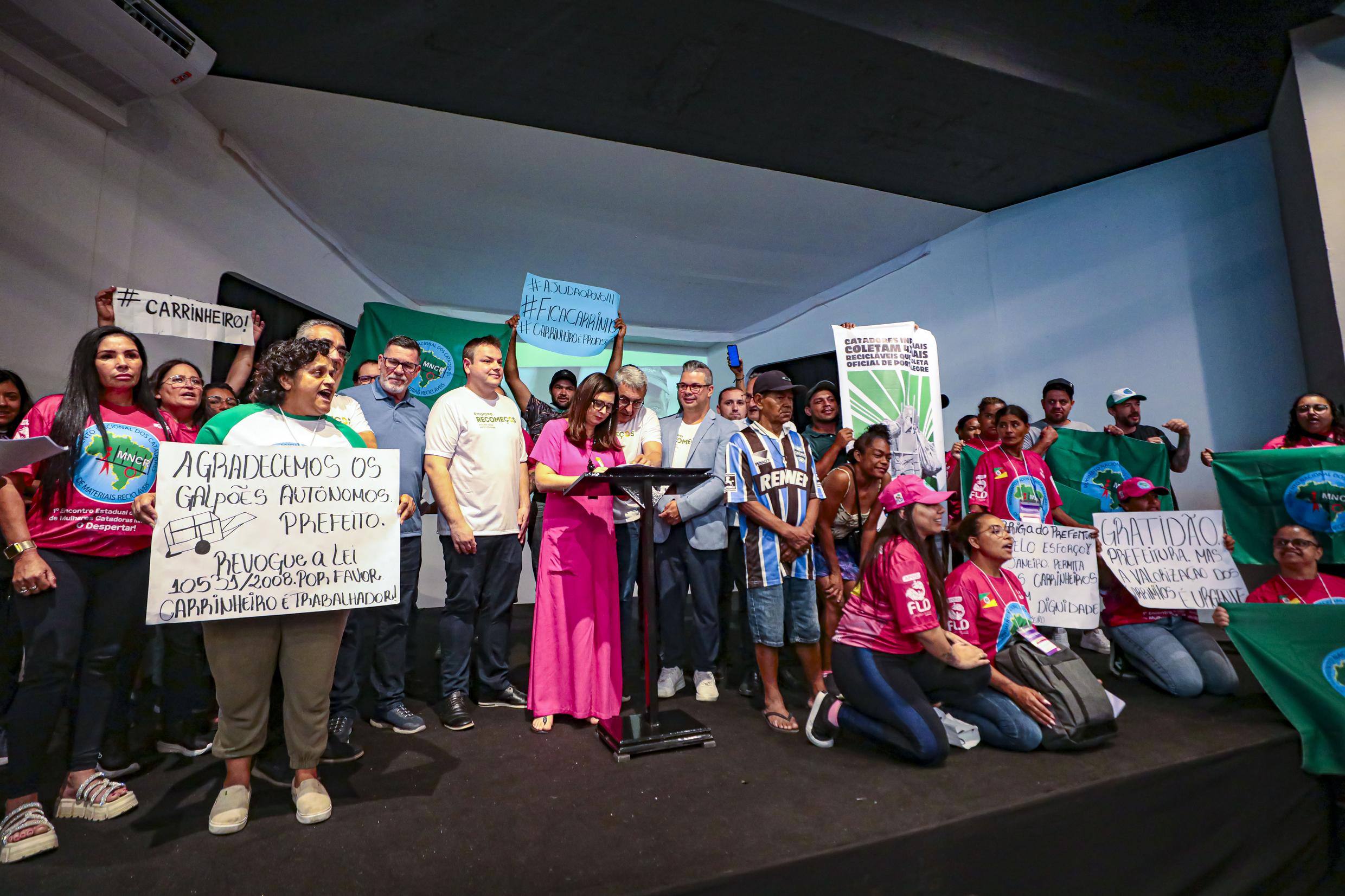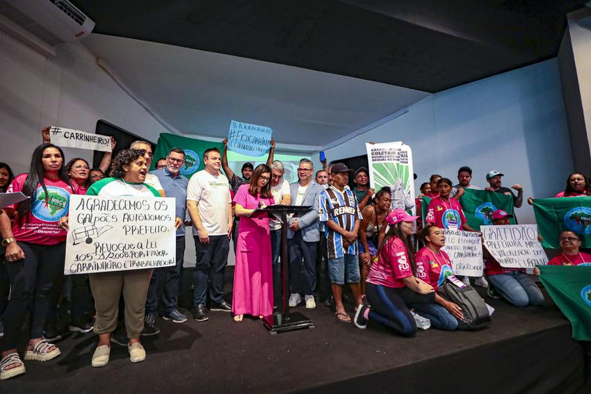 Porto Alegre, RS, Brasil, 03/12/2025: Com as presenças do prefeito Sebastião Melo, do secretário municipal da Inclusão e Desenvolvimento Humano, Juliano Passini e do secretário municipal de Assistência Social (SMAS), Matheus Xavier, a Prefeitura de Porto Alegre, apresentou, nesta quarta-feira, 3, durante evento realizado no Auditório da Secretaria Municipal de Educação, o Programa Recomeços, voltado à transformação da realidade de catadores e recicladores do município. A iniciativa prevê investimentos no fortalecimento das Unidades de Triagem, concessão de bolsa aos participantes e ações estruturantes em comunidades, com foco na dignidade, na autonomia e na inclusão produtiva. Foto: Alex Rocha/PMPA