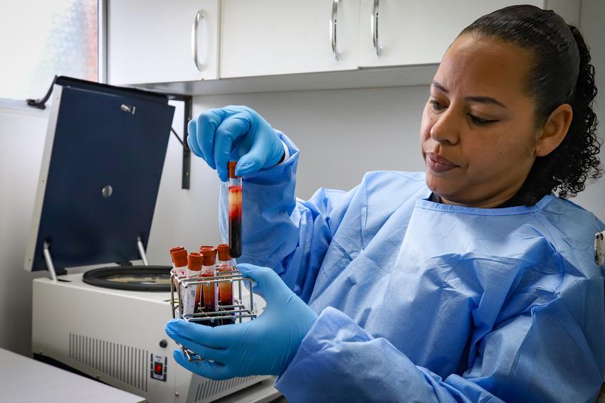 Porto Alegre, RS, 03/12/2025 A Secretaria Municipal de Saúde de Porto Alegre vem utilizando, desde fevereiro de 2025, a técnica de aplicação de fibrina rica em plaquetas (PRF) em curativos especializados, beneficiando pacientes encaminhados pela Atenção Primária à Saúde. Os atendimentos ocorrem no Centro de Saúde Murialdo (av. Bento Gonçalves, 3722 - Partenon). Na foto o procedimento sendo realizado pela enfermeira estomaterapeuta, Luciana Porto, e equipe responsável pelo serviço. Foto: Cristine Rochol/PMPA