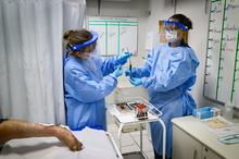 Porto Alegre, RS, 03/12/2025 A Secretaria Municipal de Saúde de Porto Alegre vem utilizando, desde fevereiro de 2025, a técnica de aplicação de fibrina rica em plaquetas (PRF) em curativos especializados, beneficiando pacientes encaminhados pela Atenção Primária à Saúde. Os atendimentos ocorrem no Centro de Saúde Murialdo (av. Bento Gonçalves, 3722 - Partenon). Na foto o procedimento sendo realizado pela enfermeira estomaterapeuta, Luciana Porto, e equipe responsável pelo serviço. Foto: Cristine Rochol/PMPA