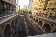 Porto Alegre, RS, Brasil, 03/12/2025: Avançam as obras de restauração do Viaduto Otávio Rocha. A estrutura, um dos cartões-postais do Centro Histórico, está localizada no cruzamento da Avenida Borges de Medeiros com a Rua Duque de Caxias. Foto: Alex Rocha/PMPA