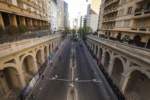 Porto Alegre, RS, Brasil, 03/12/2025: Avançam as obras de restauração do Viaduto Otávio Rocha. A estrutura, um dos cartões-postais do Centro Histórico, está localizada no cruzamento da Avenida Borges de Medeiros com a Rua Duque de Caxias. Foto: Alex Rocha/PMPA