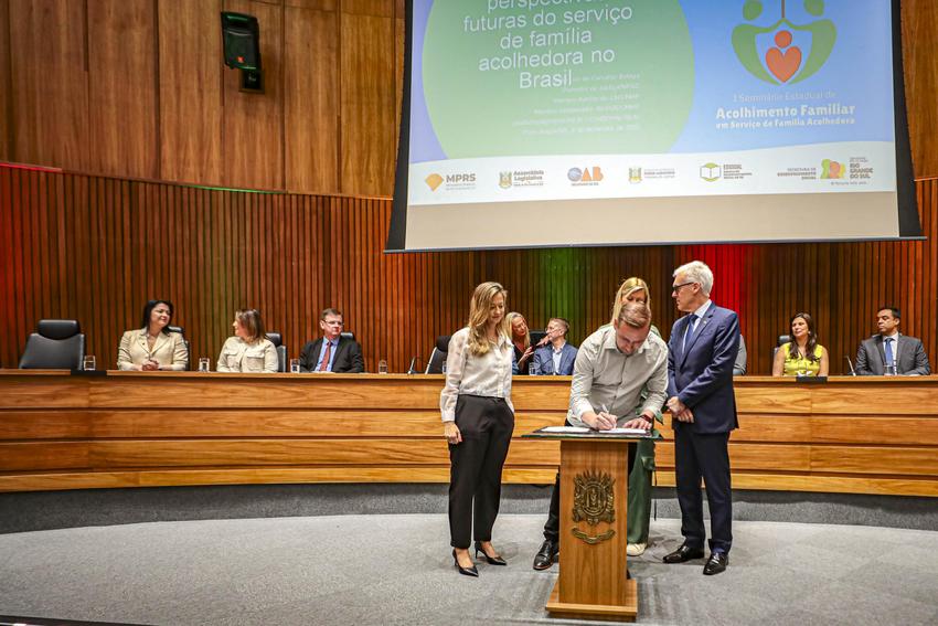 Porto Alegre, RS, Brasil, 04/12/2025: A prefeita em exercício, Betina Worm e o secretário municipal de Assistência Social (SMAS), Matheus Xavier, participaram, na manhã desta quinta-feira (04), no auditório da sede da MPRS, do ato de assinatura de termo de cooperação entre a Secretaria Municipal de Assistência Social (SMAS) e Ministério Público do Rio Grande do Sul (MPRS), para fortalecer as ações de proteção integral de crianças e adolescentes. Foto: Alex Rocha/PMPA