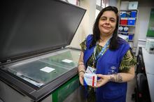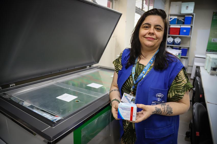 Porto Alegre, RS, 04/12/2025 Frasco de vacina contra o vírus sincicial respiratório (VSR), que é a principal causa da bronquiolite. Distribuição nacional para o SUS começou em dezembro de 2025. A vacinação é recomendada para gestantes a partir da 28ª semana de gestação, protegendo os recém-nascidos. Foto: Cristine Rochol/PMPA