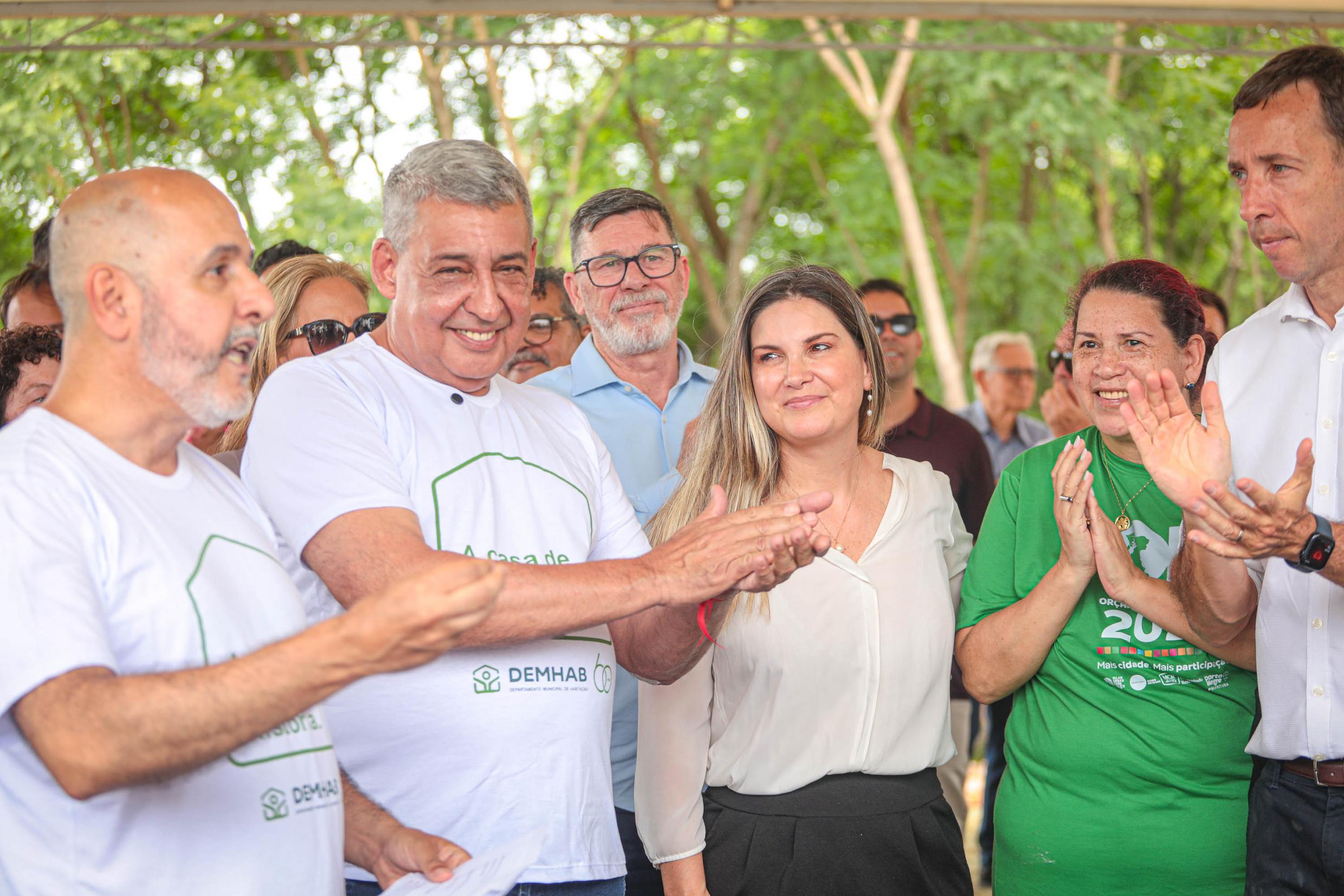 Porto Alegre, RS, Brasil, 08/12/2025: A Prefeitura de Porto Alegre e o Sindicato das Indústrias da Construção Civil do Estado do Rio Grande do Sul (Sinduscon-RS) realizaram nesta segunda-feira, 8, às 11h, a entrega de 31 unidades habitacionais na Rua Pedro Boticário, no bairro Glória. As moradias foram destinadas a famílias atingidas pelas enchentes e por outros eventos climáticos que impactaram a cidade. As casas foram doadas ao município pelo Sinduscon-RS, como parte de uma iniciativa voltada à reconstrução e ao apoio às populações mais vulneráveis diante dos recentes desastres naturais. Foto: Alex Rocha/PMPA
