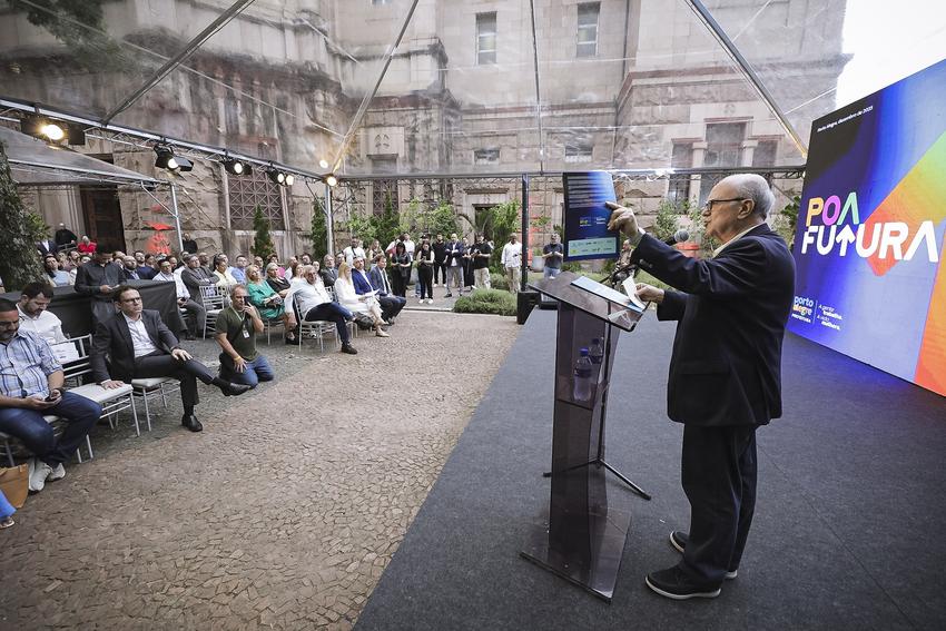 Porto Alegre, RS, Brasil - 08/12/2026 - A Prefeitura de Porto Alegre lançou nesta segunda-feira, 8, o POA Futura, programa que propõe uma ampla transformação urbana e social na capital gaúcha, com foco em áreas estratégicas como resiliência, qualidade de vida, inclusão social, mobilidade e gestão digital. O evento foi realizado às 17h, no Café da Catedral (rua Dom Sebastião, s/n, entre a Catedral Metropolitana e o Palácio Piratini), no bairro Centro Histórico. Local: Café da Catedral, R. Dom Sebastião - Centro Histórico. Fotos: Cesar Lopes/PMPA