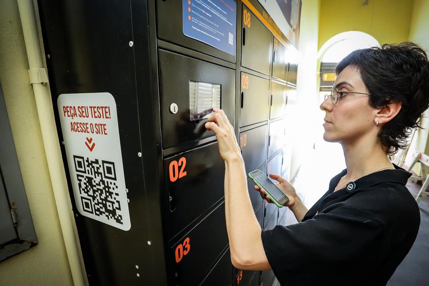 Porto Alegre, RS, 08/12/2025 Programa A Hora é Agora. Armário para retirada de kit com autoteste e orientações, localizado no interior do Mercado Público (entrada da Praça Parobé quase na esquina com Júlio de Castilhos). Foto: Cristine Rochol/PMPA