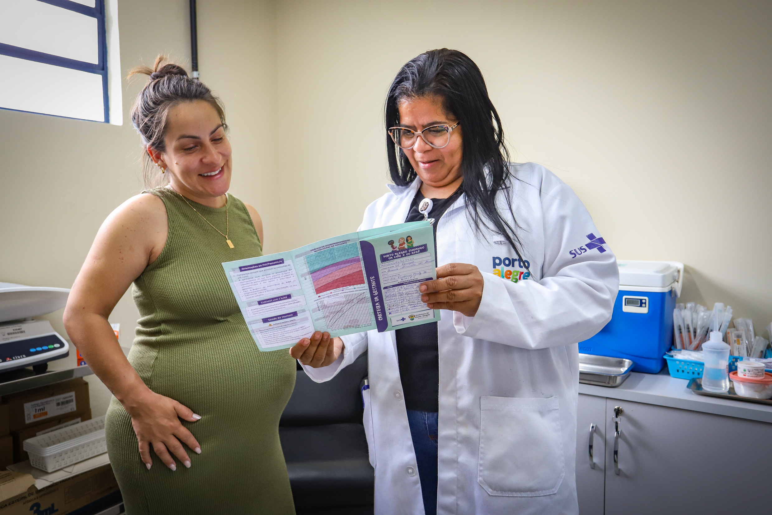 Porto Alegre, RS, 10/12/2025 Gestantes a partir da 28ª semana de gravidez já podem se vacinar contra a bronquiolite em todas unidades de saúde. O vírus sincicial respiratório (VSR) é um dos principais associados à doença e um dos maiores causadores de infecções respiratórias em recém-nascidos e crianças pequenas, sobretudo bebês. A vacina é indicada para grávidas de todas as idades, em dose única, a partir da 28ª semana, sem limite de idade gestacional. Foto: Cristine Rochol/PMPA