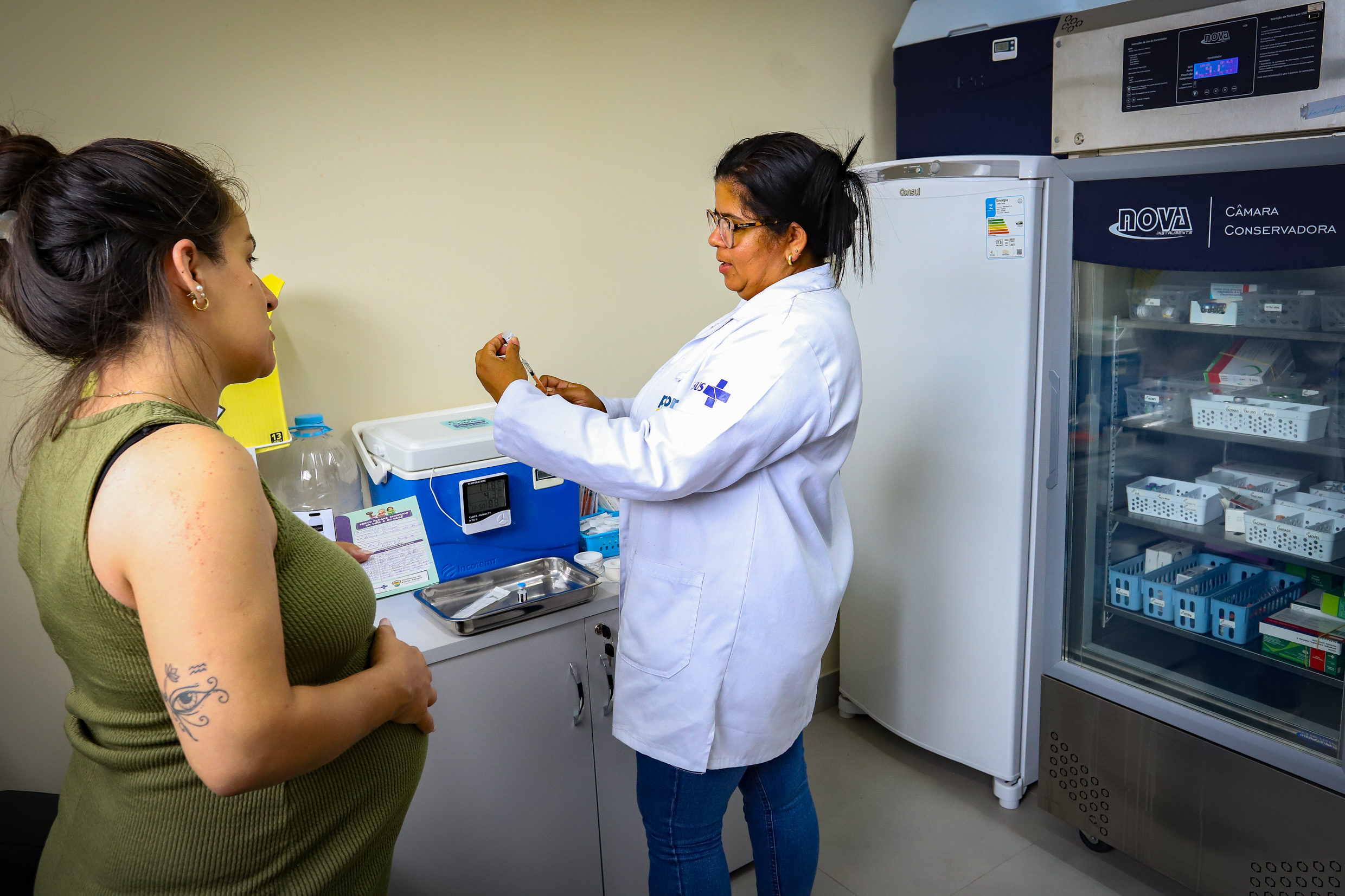 Porto Alegre, RS, 10/12/2025 Gestantes a partir da 28ª semana de gravidez já podem se vacinar contra a bronquiolite em todas unidades de saúde. O vírus sincicial respiratório (VSR) é um dos principais associados à doença e um dos maiores causadores de infecções respiratórias em recém-nascidos e crianças pequenas, sobretudo bebês. A vacina é indicada para grávidas de todas as idades, em dose única, a partir da 28ª semana, sem limite de idade gestacional. Foto: Cristine Rochol/PMPA