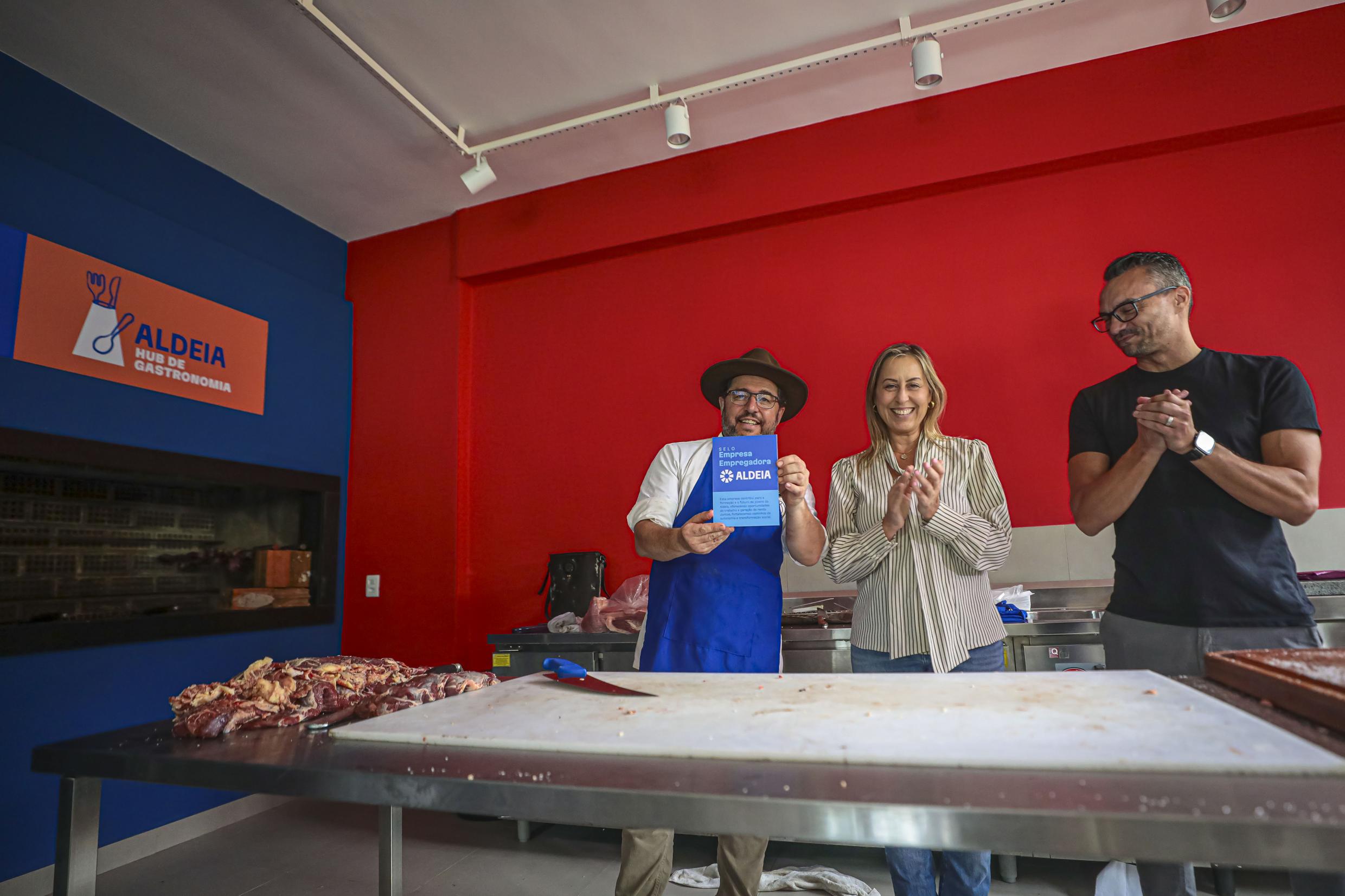 Porto Alegre, RS, Brasil, 10/12/2025: A Escola Social do Churrasco, fruto de parceria entre a Prefeitura, Aldeia da Fraternidade e setor privado, teve início nesta quarta-feira, 10, com uma aula inaugural. O evento aconteceu às 11h, na sede do projeto (Rua Dona Paulina, 700). Foto: Alex Rocha/PMPA