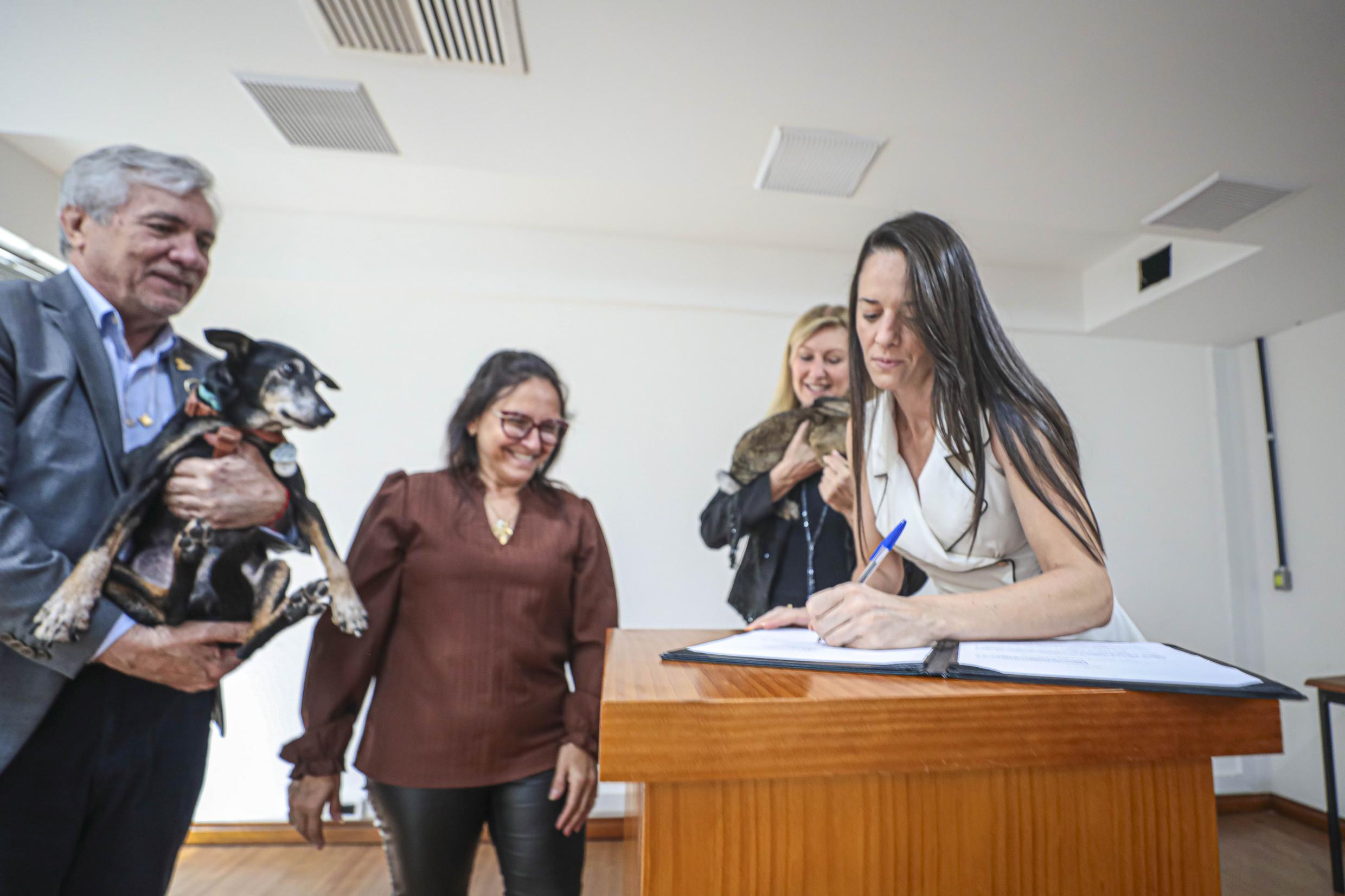 Porto Alegre, RS, Brasil, 11/12/2025: Na manhã desta quinta-feira (11), no auditório do 18º andar do Centro Administrativo Municipal Guilherme Socias Villela (CAM), foi realizado o ato de assinatura do decreto que regulamenta o Programa Farmácia Veterinária Solidária. Foto: Alex Rocha/PMPA