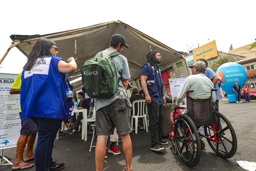 Porto Alegre, RS, Brasil, 12/12/2025: A Prefeitura de Porto Alegre participa nesta sexta-feira, 12, das 10h às 17h, do Mutirão PopRuaJud, iniciativa do Conselho Nacional de Justiça (CNJ) voltada a garantir acesso a serviços de justiça, cidadania e direitos sociais para pessoas em situação de rua e em extrema vulnerabilidade. A atividade acontece no Largo Zumbi dos Palmares. Foto: Alex Rocha/PMPA