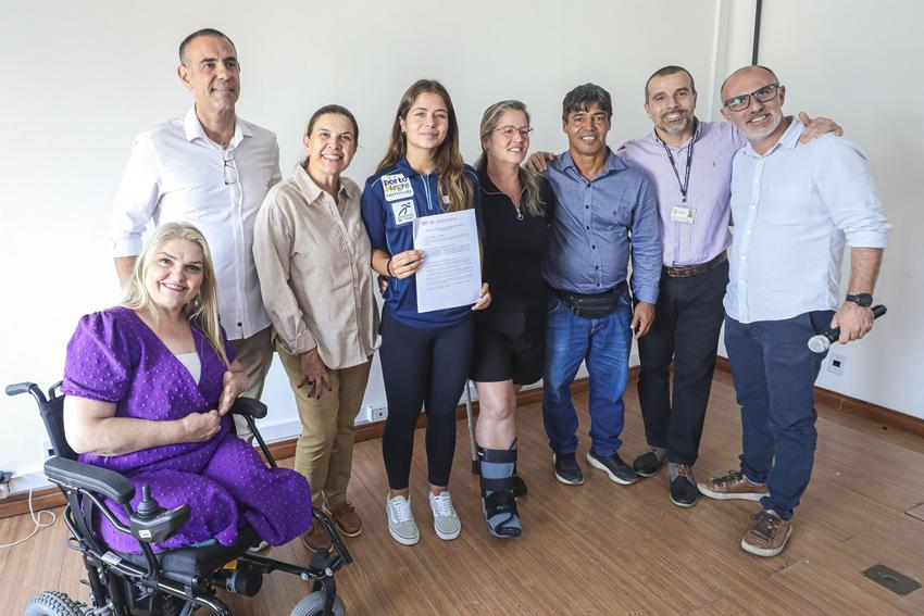 Porto Alegre, RS, Brasil, 12/12/2025: Na tarde desta sexta-feira (12), foi realizado, no auditório do 18º andar do Centro Administrativo Municipal Guilherme Socias Villela (CAM), o ato de assinatura do com os atletas contemplados no programa Bolsa-Atleta Municipal. Foto: Alex Rocha/PMPA