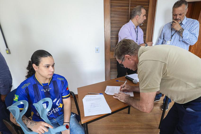 Porto Alegre, RS, Brasil, 12/12/2025: Na tarde desta sexta-feira (12), foi realizado, no auditório do 18º andar do Centro Administrativo Municipal Guilherme Socias Villela (CAM), o ato de assinatura do com os atletas contemplados no programa Bolsa-Atleta Municipal. Foto: Alex Rocha/PMPA