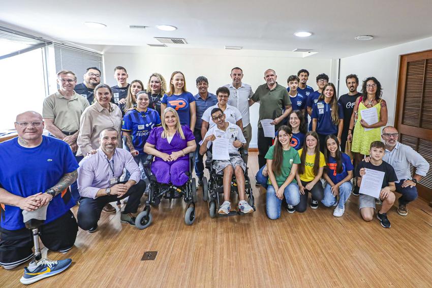 Porto Alegre, RS, Brasil, 12/12/2025: Na tarde desta sexta-feira (12), foi realizado, no auditório do 18º andar do Centro Administrativo Municipal Guilherme Socias Villela (CAM), o ato de assinatura do com os atletas contemplados no programa Bolsa-Atleta Municipal. Foto: Alex Rocha/PMPA