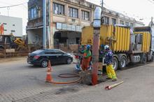 Porto Alegre, RS. 15/12/2025. DMAE trabalha de forma tradicional e com supersugadores para manter as redes pluviais limpas.