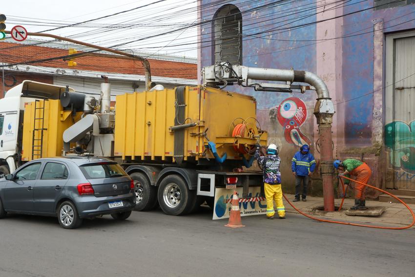 Porto Alegre, RS. 15/12/2025. DMAE trabalha de forma tradicional e com supersugadores para manter as redes pluviais limpas.
