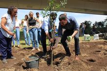 Porto Alegre, RS, Brasil, 15/12/2025: Na manhã desta segunda-feira, 15, o início do plantio de 850 árvores nativas em área de cerca de 600 m2 marcou a implantação da primeira floresta de bolso de Porto Alegre, entre a avenida Padre Cacique e o viaduto Abdias do Nascimento (avenida Pinheiro Borda), no bairro Praia de Belas. Foto: Sergio Louruz/SMAMUS