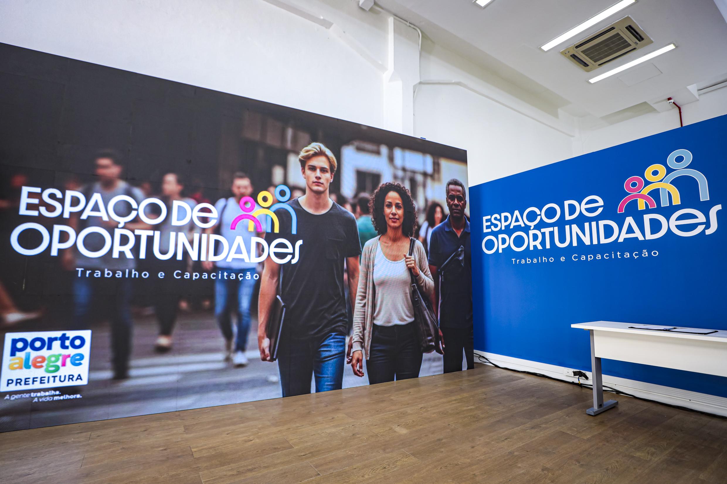 Porto Alegre, RS, Brasil, 16/12/2025: A Prefeitura de Porto Alegre apresentou nesta terça-feira, 16, o Espaço de Oportunidades (rua Uruguai, 83, Bairro Centro Histórico), nova estrutura municipal voltada à empregabilidade, qualificação profissional e atendimento humanizado ao trabalhador. Com área de 500 metros quadrados, o espaço reúne, em um único local, serviços de intermediação de mão de obra, formação e orientação profissional. A entrega marca o retorno das atividades do Sine Municipal ao Centro Histórico, suspensas desde a enchente de 2024. Foto: Alex Rocha/PMPA