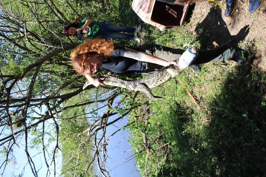 Porto Alegre, RS,Brasil, 19/12/2025: A Equipe de Fauna Silvestre da Secretaria Municipal do Meio Ambiente, Urbanismo e Sustentabilidade (Smamus) fez, nesta quinta-feira, 18, a soltura de um jacaré-de-papo-amarelo (Caiman latirostris) na Reserva Biológica do Lami José Lutzenberger, no bairro Lami. O resgate ocorreu em Torres (RS) e foi realizado pela Patrulha Ambiental da Brigada Militar (Patram). O animal foi encaminhado à ONG Voluntários da Fauna, em Porto Alegre, e recebeu atendimento especializado em uma clínica vinculada à entidade, especializada no cuidado com animais silvestres. Foto: Sérgio Louruz/SMAMUS