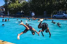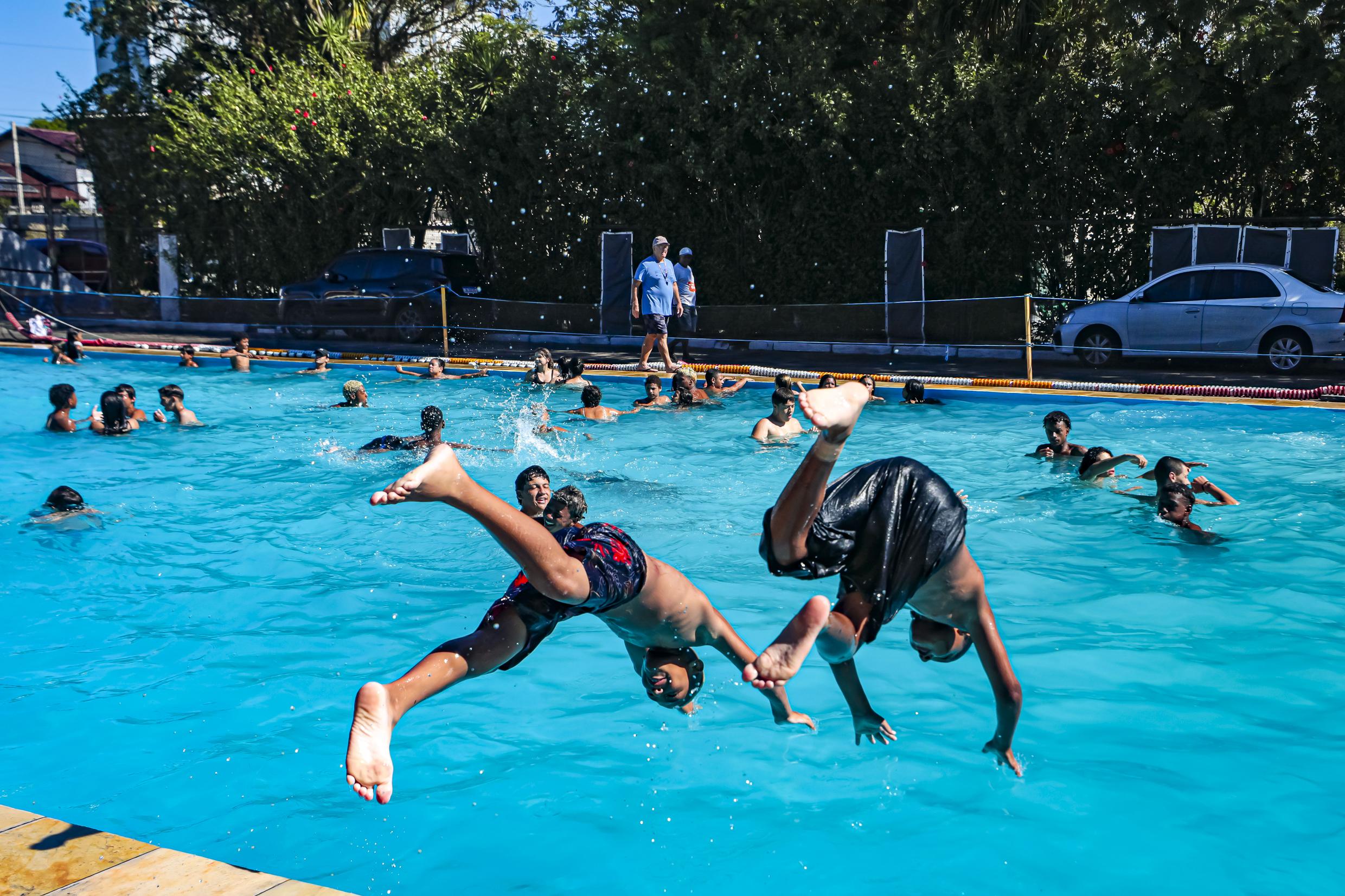 Porto Alegre, RS, Brasil, 18/12/2025: A temporada de verão nas piscinas públicas de Porto Alegre iniciou antecipadamente este ano. Os cinco centros comunitários, começaram os atendimentos ao público no dia 9 de dezembro, seguindo até 28 de fevereiro de 2026. Foto: Alex Rocha/PMPA