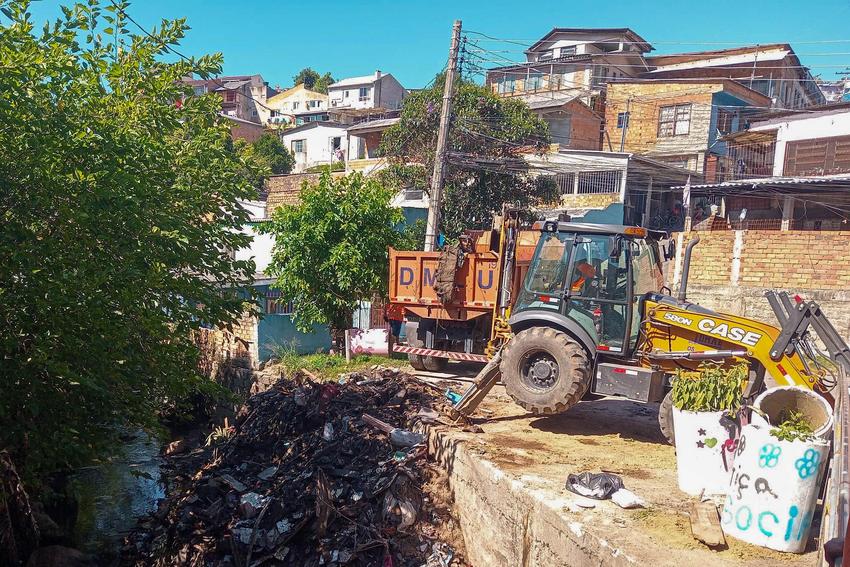 Porto Alegre, RS. 20/12/2025. DMAE e DMLU realizam limpeza no Arroio Moinho na zona Leste.