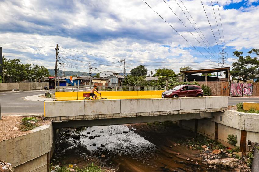 Porto Alegre, RS, Brasil, 22/12/2025: Obras da ponte do Salso, que liga as ruas Nilza da Silveira e do Cedro, no bairro Restinga. No local foram executadas obras de infraestrutura e alargamento da rua do Cedro, assim como serviços de drenagem, colocação de meio-fio, construção de muros e pavimentação. Foto: Alex Rocha/PMPA