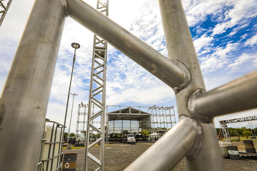 Porto Alegre, RS, Brasil, 22/12/2025: Montagem das estruturas para o Réveillon 2026. A chegada do Ano-Novo em Porto Alegre será realizada novamente no Parque Harmonia, com entrada gratuita. A programação se inicia às 17h do dia 31 e segue até as 3h de 1º de janeiro. Conforme a concessionária GAM3 Parks, a expectativa é reunir 175 mil pessoas, que poderão celebrar a virada do ano com shows de atrações nacionais e da cultura local. Foto: Alex Rocha/PMPA
