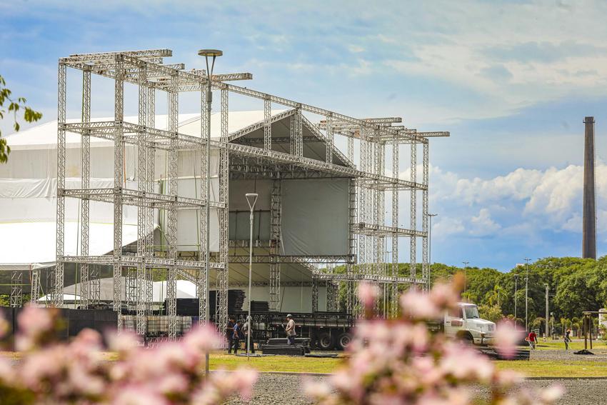 Porto Alegre, RS, Brasil, 22/12/2025: Montagem das estruturas para o Réveillon 2026. A chegada do Ano-Novo em Porto Alegre será realizada novamente no Parque Harmonia, com entrada gratuita. A programação se inicia às 17h do dia 31 e segue até as 3h de 1º de janeiro. Conforme a concessionária GAM3 Parks, a expectativa é reunir 175 mil pessoas, que poderão celebrar a virada do ano com shows de atrações nacionais e da cultura local. Foto: Alex Rocha/PMPA