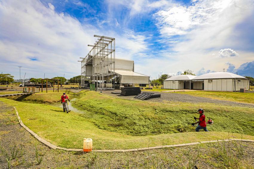 Porto Alegre, RS, Brasil, 22/12/2025: Montagem das estruturas para o Réveillon 2026. A chegada do Ano-Novo em Porto Alegre será realizada novamente no Parque Harmonia, com entrada gratuita. A programação se inicia às 17h do dia 31 e segue até as 3h de 1º de janeiro. Conforme a concessionária GAM3 Parks, a expectativa é reunir 175 mil pessoas, que poderão celebrar a virada do ano com shows de atrações nacionais e da cultura local. Foto: Alex Rocha/PMPA