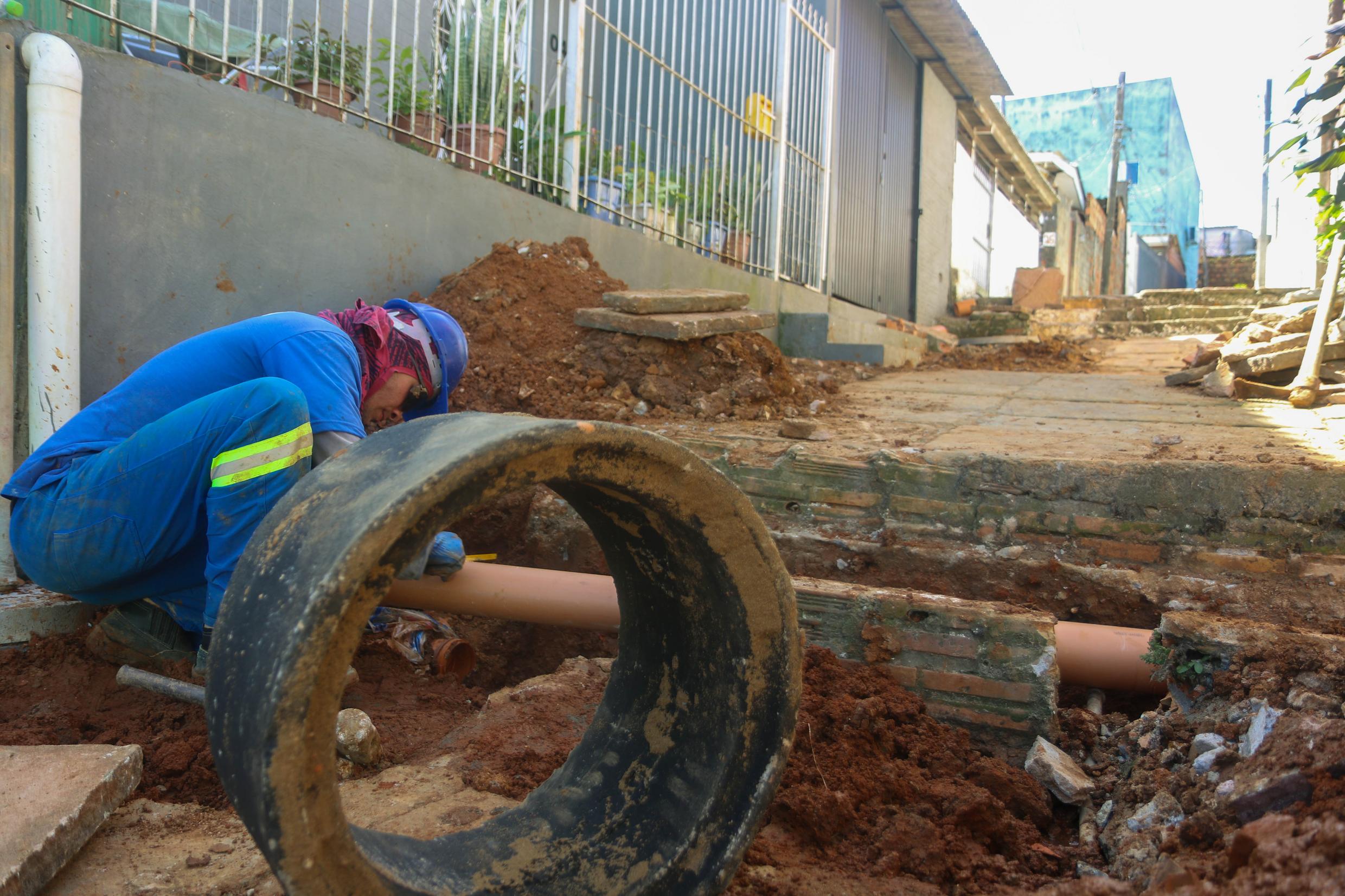 Porto Alegre, RS. 23/12/2025. DMAE Implanta rede de esgotamento sanitário na Vila São Vicente Mártir.