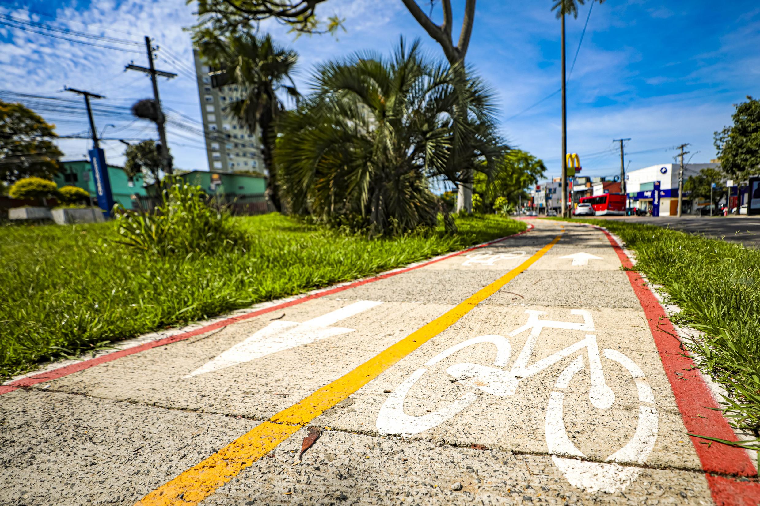 Porto Alegre, RS, Brasil, 30/12/2025: A Prefeitura de Porto Alegre concluiu a implantação da ciclovia da avenida Wenceslau Escobar, no trecho entre a Praça da Tristeza (Praça Comendador Souza Gomes) e a avenida Coronel Massot. Com 1,5 km de extensão, a nova estrutura é resultado de contrapartida de um empreendimento. Foto: Alex Rocha/PMPA