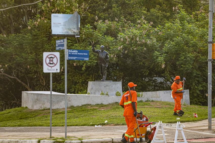 Porto Alegre, RS, Brasil, 01º/01/2026: Após a festa de Réveillon no Parque Harmonia, o Departamento Municipal de Limpeza Urbana (DMLU) montou uma operação especial de limpeza para o recolhimento de resíduos no entorno do evento. Já foram retiradas cinco toneladas de materiais da área e a previsão é de recolher mais três até o fim da manhã desta quinta-feira, 1º. As equipes foram mobilizadas após a meia-noite para os serviços de varrição, recolhimento de resíduos e lavagem das avenidas Presidente João Goulart e Edvaldo Pereira Paiva, além da Orla do Guaíba. A limpeza dentro do parque compete à concessionária GAM3 Parks. Foto: Alex Rocha/PMPA