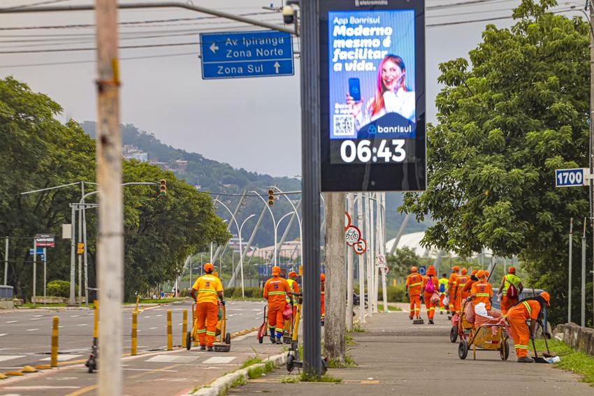 Porto Alegre, RS, Brasil, 01º/01/2026: Após a festa de Réveillon no Parque Harmonia, o Departamento Municipal de Limpeza Urbana (DMLU) montou uma operação especial de limpeza para o recolhimento de resíduos no entorno do evento. Já foram retiradas cinco toneladas de materiais da área e a previsão é de recolher mais três até o fim da manhã desta quinta-feira, 1º. As equipes foram mobilizadas após a meia-noite para os serviços de varrição, recolhimento de resíduos e lavagem das avenidas Presidente João Goulart e Edvaldo Pereira Paiva, além da Orla do Guaíba. A limpeza dentro do parque compete à concessionária GAM3 Parks. Foto: Alex Rocha/PMPA