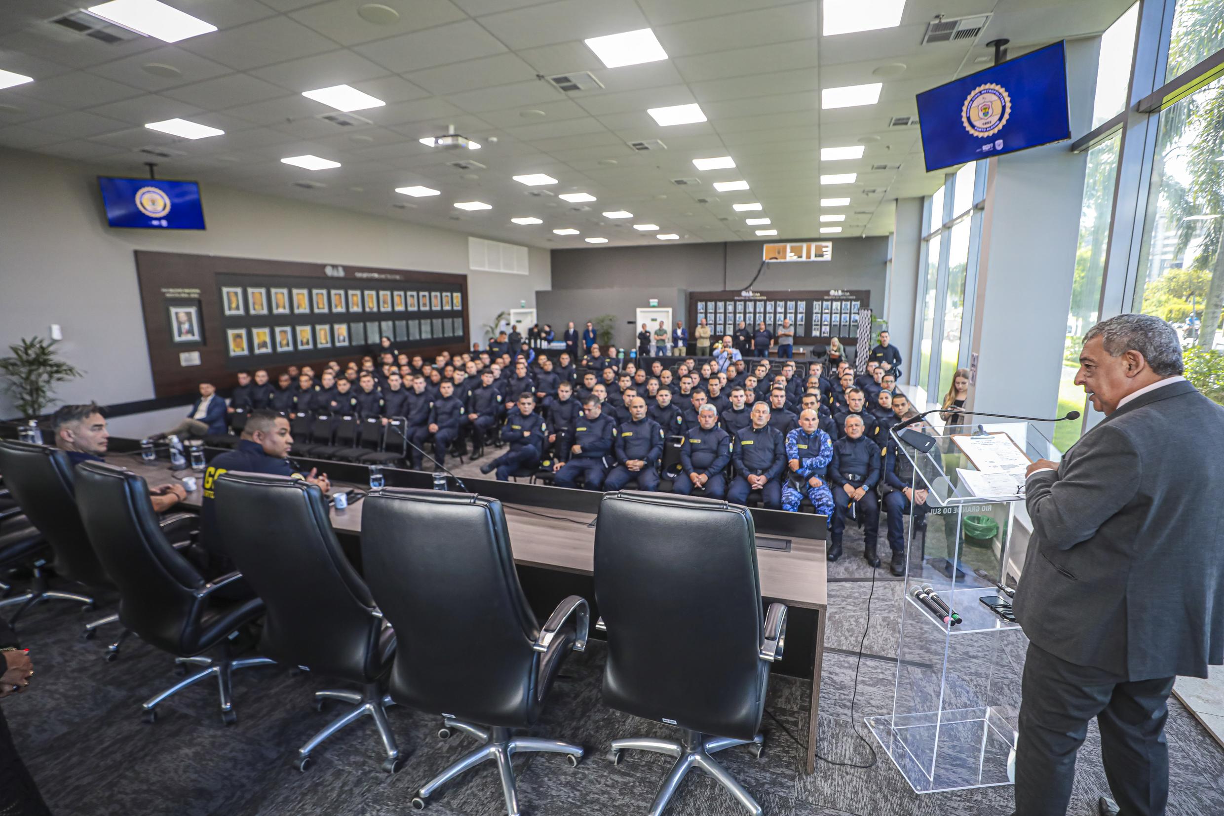 Porto Alegre, RS, Brasil, 05/01/2026: O prefeito, Sebastião Melo, participou, na manhã desta segunda-feira (05), no auditório da OAB-RS, da abertura do Seminário de Capacitação dos novos Guardas Civis de Porto Alegre. Foto: Alex Rocha/PMPA
